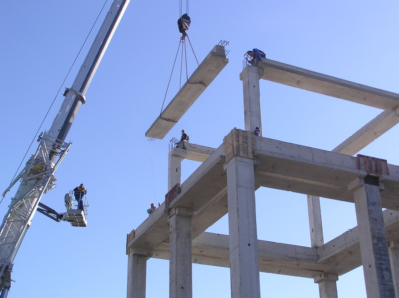 Pavilion intrare cu structura din beton armat. Stalpi si grinzi prefabricate cu sectiune dreptunghiulara si T intors.